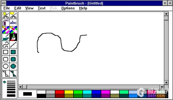 那时,在学校里上电脑教学课的,一定玩过这个吧。Windows自带的画图工具Paintbrush,支持16位与24位色,图片格式还不支持JPG,BMP格式够折腾人的,功能简单,工具就那几个,但我们却能这样画上一天,原来画画不只是笔跟纸的事。![]()