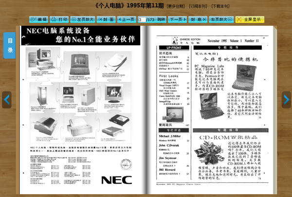 在信息严重匮乏的年代,获得电脑知识并不容易。1995年第11期的《个人电脑》杂志,“笔记本电脑:今非昔比的便携机”、“CD-ROM百张精品”,看着一个个的头条,那是纯粹只为DIY玩家服务的精神食粮。