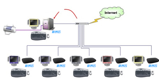 b.系统不易感染病毒,云终端没有存储设备,所以病毒无从入侵,只要在服务器端做好病毒防护即可保证整个系统不受感染;